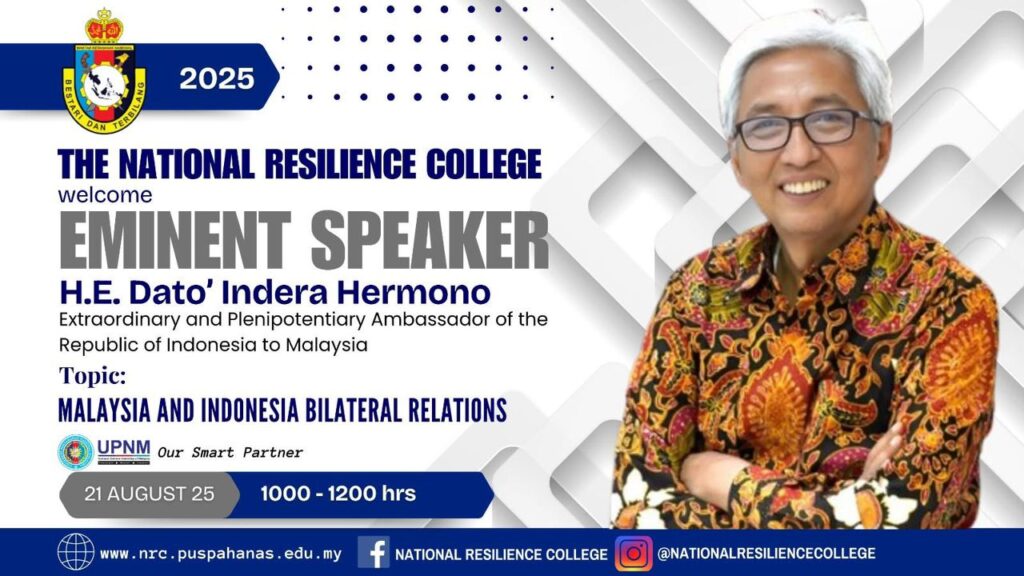 The National Resilience College had the honour of welcoming H.E. Dato’ Indera Hermono, Ambassador of the Republic of Indonesia to Malaysia, as part of the Eminent Speaker Series. His Excellency delivered an insightful address on ”Malaysia–Indonesia Bilateral Relations”, reflecting on the enduring historical ties, cultural connections, and shared aspirations that continue to strengthen both nations. […]