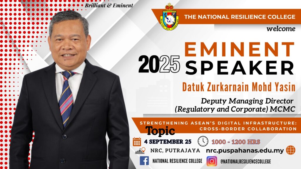 The National Resilience College had the honour of welcoming Datuk Zurkarnain Mohd Yasin, Chief Regulatory Officer of the Malaysian Communications and Multimedia Commission, as our Eminent Speaker on 4th September 2025. He spoke on “Strengthening ASEAN’s Digital Infrastructure: Cross-Border Collaboration”, a crucial subject in today’s interconnected world where regional cooperation is key to resilience, cybersecurity, […]