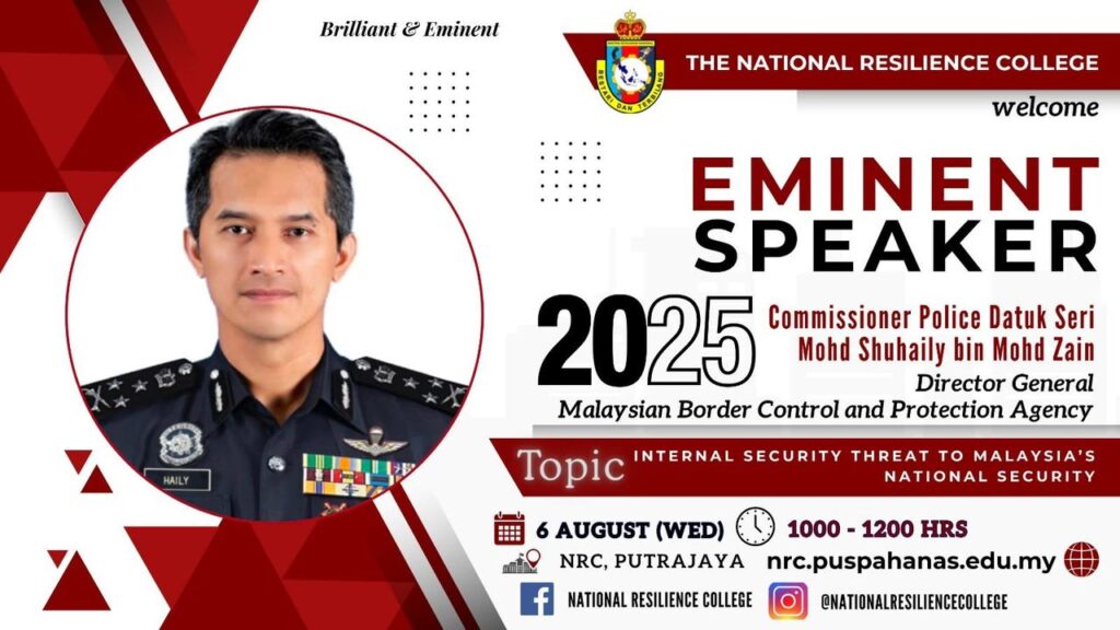 The National Resilience College (NRC) was honoured to welcome Commissioner of Police Dato’ Seri Mohd Shuhaily bin Mohd Zain, Director General of the Malaysian Border Control and Protection Agency, as our Eminent Speaker on the topic “Internal Security Threat to Malaysia’s National Security.” His insightful address shed light on the pressing challenges posed by internal […]