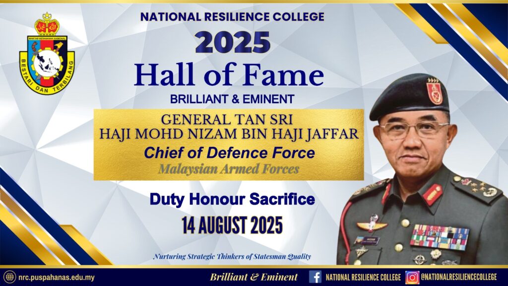 ✨ Hall of Fame Induction 2025 ✨ The National Resilience College proudly inducts General Tan Sri Haji Mohd Nizam bin Haji Jaffar, the 23rd Chief of Defence Force, into its inaugural Hall of Fame. From cadet training at Sandhurst to commanding peace missions abroad, from leading NRC through the pandemic to shaping Malaysia’s defence strategy […]
