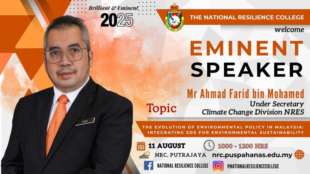 The National Resilience College (NRC) welcomed Mr. Ahmad Farid bin Mohamed, Under Secretary of the Climate Change Division, Ministry of Natural Resources, Environment and Sustainability (NRES), as an Eminent Speaker. Delivering his session on “The Evolution of Environmental Policy in Malaysia: Integrating Sustainable Development Strategies (SDS) for Environmental Sustainability,” he provided insightful perspectives on Malaysia’s […]
