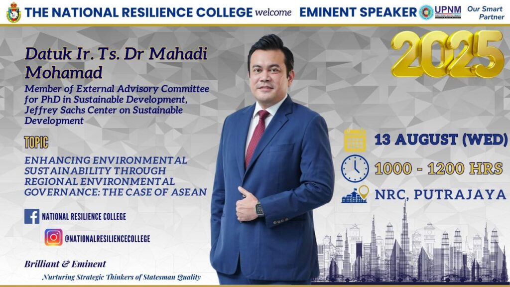 The National Resilience College (NRC) had the honour of hosting Datuk Ir. Ts. Dr Mahadi Mohamad, Member of the External Advisory Committee for PhD in Sustainable Development at the Jeffrey Sachs Centre on Sustainable Development. Delivering a session on “Enhancing Environmental Sustainability through Regional Environmental Governance: The Case of ASEAN,” he highlighted the importance of […]