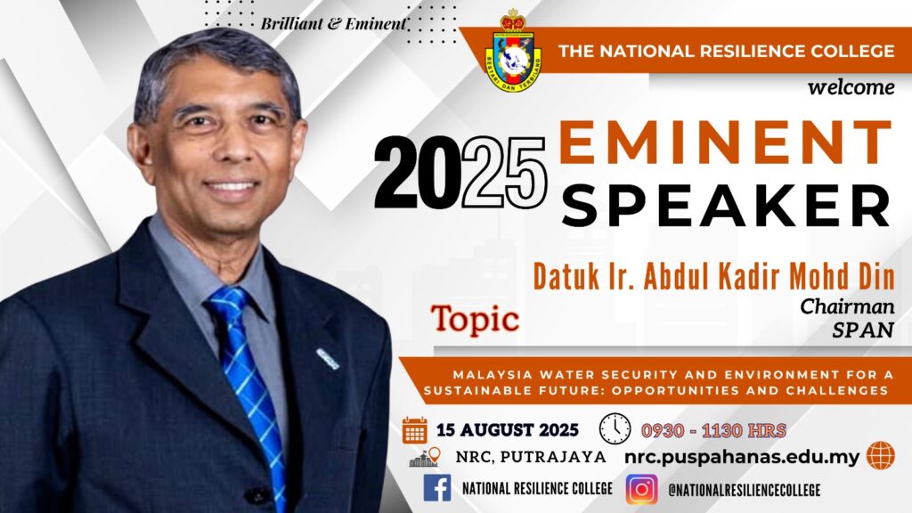 The National Resilience College proudly hosted Datuk Ir. Abdul Kadir Mohd Din, Chairman of SPAN, as our Eminent Speaker. He delivered a thought-provoking session on “Malaysia Water Security and Environment for a Sustainable Future: Opportunities and Challenges”, emphasising the crucial role of water governance, sustainability, and resilience in shaping Malaysia’s future. His insights inspired our […]