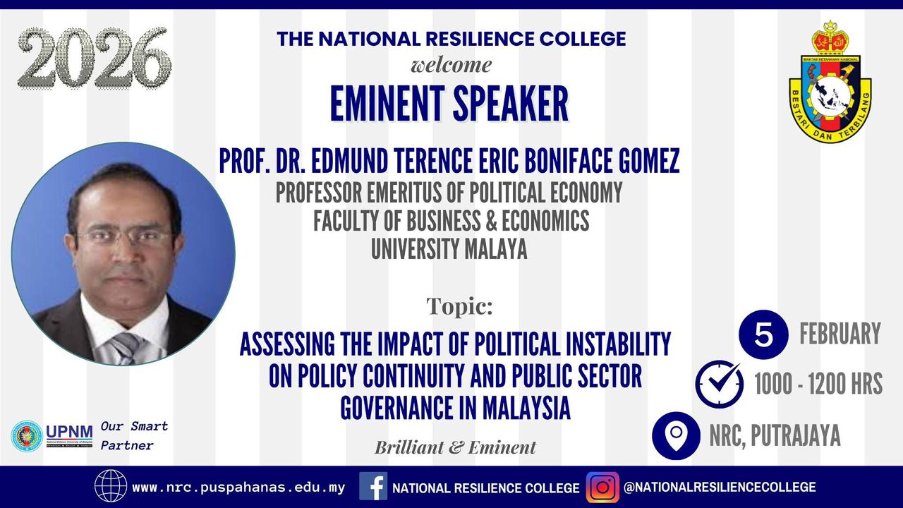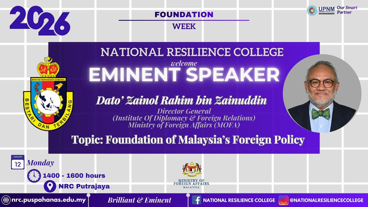 On 13 January 2026 at NRC Putrajaya, the National Resilience College hosted an Eminent Speaker session featuring Yang Amat Arif...