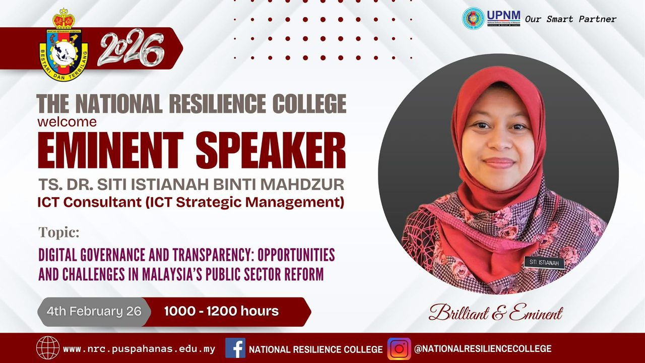 Digital Governance and Transparency: Opportunities and Challenges in Malaysia’s Publi The National Resilience College welcomed Ts. Dr Siti Istianah binti...