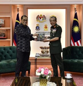 The Commandant of the National Resilience College (NRC), Major General Abdul Karim bin Ahmad, recently paid a Courtesy Call on the Minister of Defence, YB Dato’ Seri Mohamed Khaled Nordin at his office.