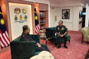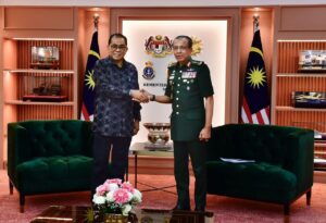 The Commandant of the National Resilience College (NRC), Major General Abdul Karim bin Ahmad, recently paid a Courtesy Call on the Minister of Defence, YB Dato’ Seri Mohamed Khaled Nordin at his office.
